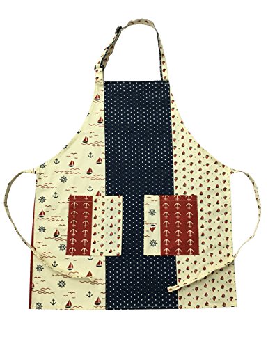 WM BEAUTY Cooking Poly-Cotton Apron Saling Boat Style Dot with 2 Front Pockets Dark Blue