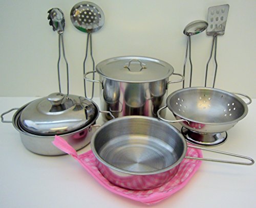 PLAYSET METAL POTS AND PANS KITCHEN COOKWARE FOR KIDS WITH COOKING UTENSILS SET 0F 10