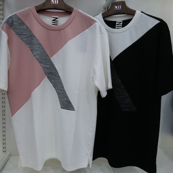유행하는 오버핏 사선 전개 반팔 티셔츠~시원한 쿨원단 티셔츠