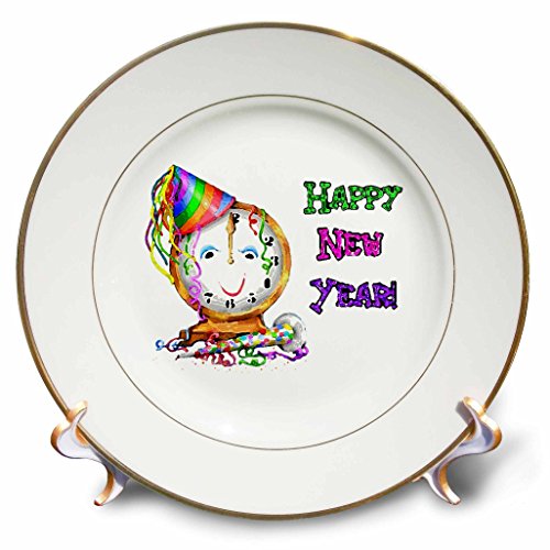 3dRose cp_3962_1 Happy New Year-Porcelain Plate, 8-Inch