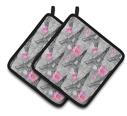Caroline's Treasures BB7503PTHD Watercolor Pink Flowers Eiffel Tower Decorated Pot Holder, 7.5" x 7.5", Multicolor
