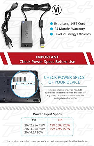 POWER SPECS : Output Max: 20V 4.5A 90W (65W 45W compatible) / Input Volt Range: 110-240V / Original Lenovo Charger Laptop AC Adapter Power Cord Replacement by PWR+