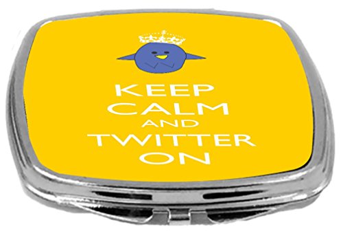 Rikki Knight Compact Mirror, Keep Calm and Twitter On Yellow