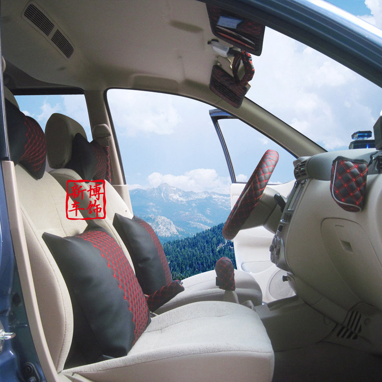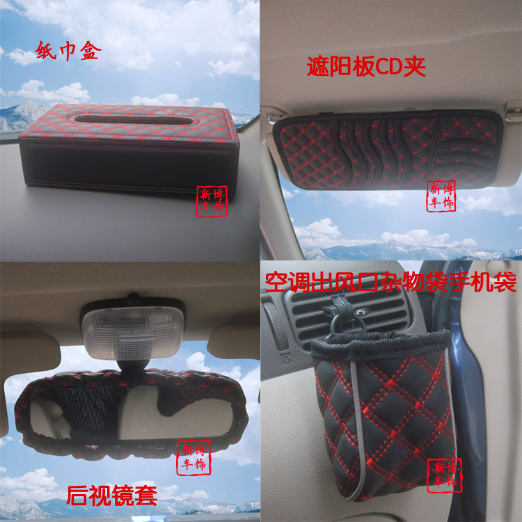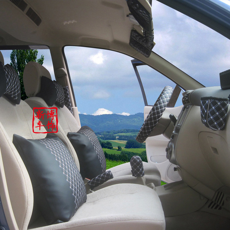 头枕×2 安全带护肩×2 档把头套×1 手刹套×1 遮阳板CD夹×1 纸巾盒×1 后视镜套×1 空调风口杂物袋×1