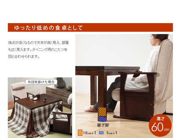 ●ダイニングテーブル こたつテーブル ダイニングコタツ 継脚