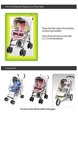 * Clear flat surface optical windows screen up to 99% of UV rays and provides clear vision without any optical distortions and aids vision development on infants. (Optical distortion or refraction can be found on other vinyl covers that easily wrinkle and don't stay flat therefore it may cause dizziness and tiredness in the eyes especially during the early stages of development)