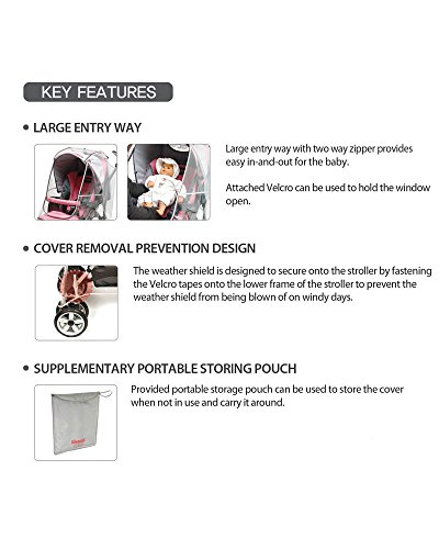 * Secures the bottom of the stroller with Velcro tapes to avoid cover being blown off from strong wind blow.