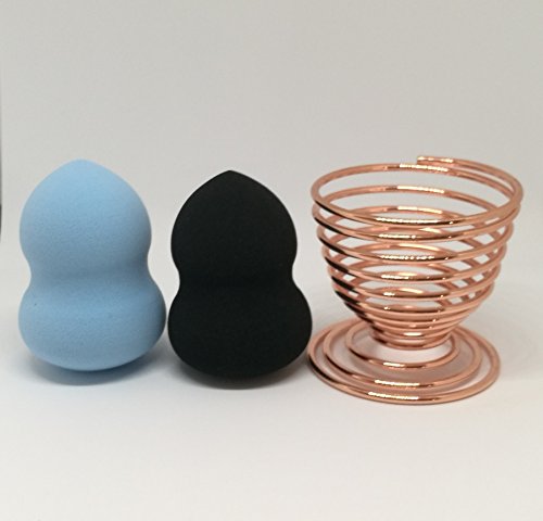 Glam Master Value Packe of 2 Gourd Shape Non Latex Makeup Sponge- Light Blue & Black-with a Free Makeup Sponge Holder