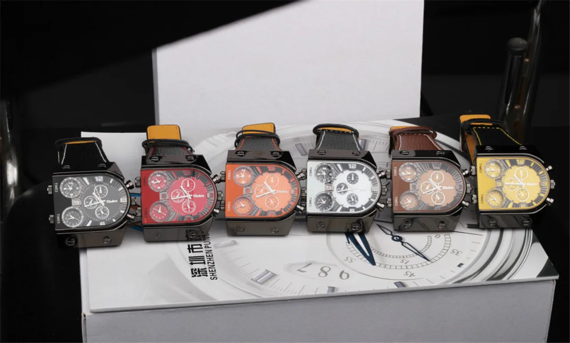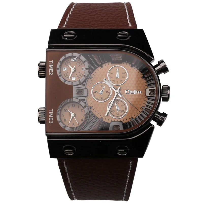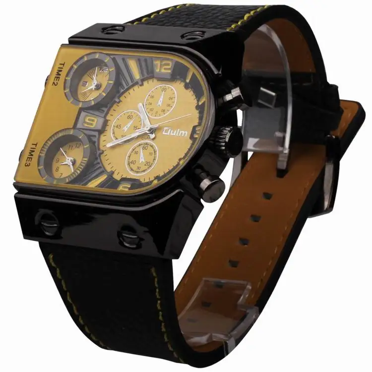 ブランドoulm時計石英スポーツ男性レザーストラップ腕時計ファッション男性ミリタリー腕時計ランニングクールrelojioes時計masculino