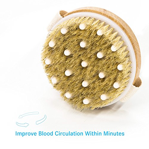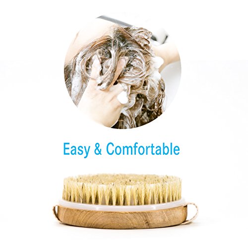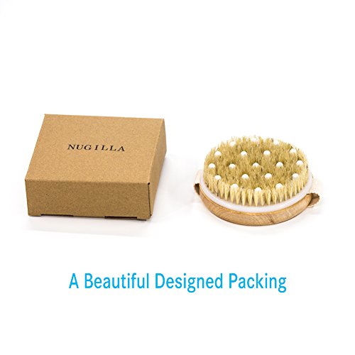Nugilla Round Wooden Bath Shower Body Brush – Natural Bristle and Gentle Massage Nodes – for Back Cellulite Reduction and Body Exfoliation