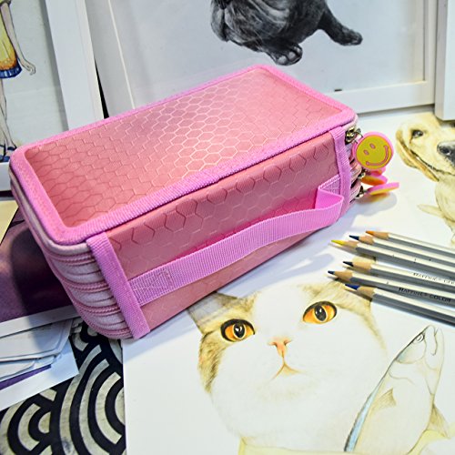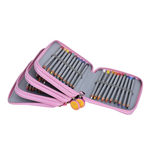 Newcomdigi Federmappe Schuleretui 72 Bleistift Inhaber Farbstifte Mehrzweck Etui Bleistift-Beutel fur Schule Buro Kunst (Bleistifte sind nicht enthalten) -rosa