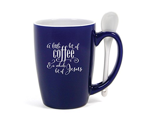 Little Bit of Coffee Whole Lot of Jesus Cobalt Blue 15 Ounce Ceramic Coffee Mug with Spoon