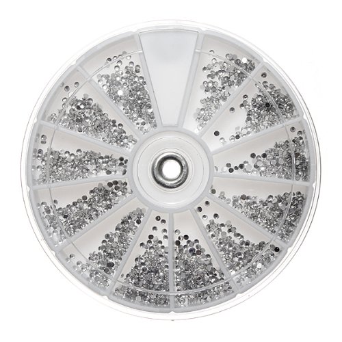 Features: Easy to apply on natural or artificial nails. You can also use them to decorate home or made cards. Clean the surface of your nails- brush the base polish. Place it onto nails Seal with a clear top coat. Description: Color: Silver Shape: Round flat Rhinestones Diameter: app 1.5mm Weight: about 19g( Include the wheel ) Package included: 1x wheel nail art Rhinestones ( app 2400pcs )