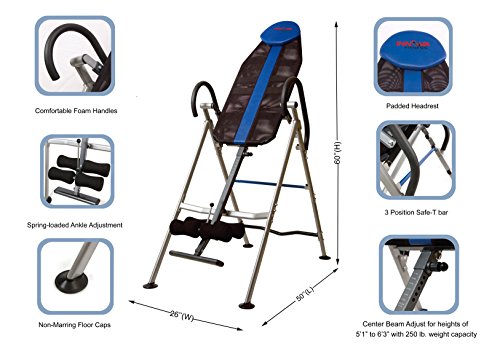 • Exclusive 3- Inversion position safety bar allows for comfortable inverting
