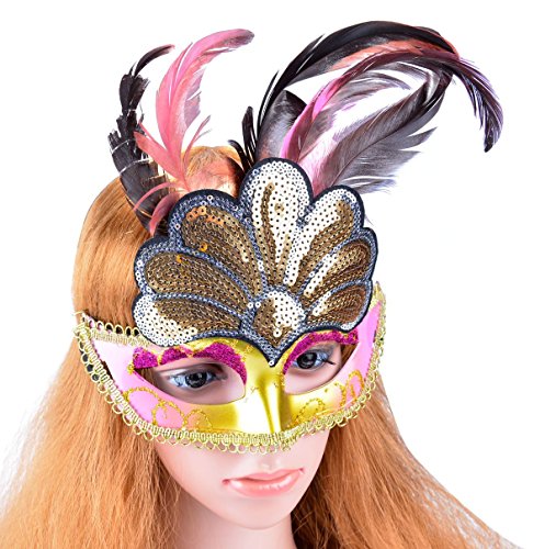 -. Brand : Coxeer -. Department : womens -. Feature : Material: PVC (Polyvinyl chloride) Plastic / Size: One size fits most / Unique peacock style feather masquerade masks / Designed with strap to keep the mask in position / Great for balls, costume parties, carnivals, Halloween, birthday parties and more. -. ProductGroup : Apparel -. ProductTypeName : ADULT_COSTUME -. Title : Coxeer Mardi Gras Mask Peacock Style Feather Mask Masquerade Mask for Women