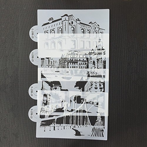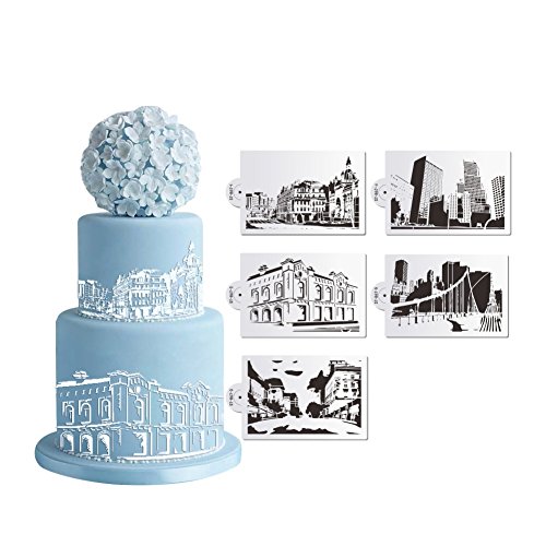 5pcs Fashionable Modern Building Stencil Set Wedding Cake Stencil, Mansion Fondant Cake Decorating Tools, Baking Tool ST-867