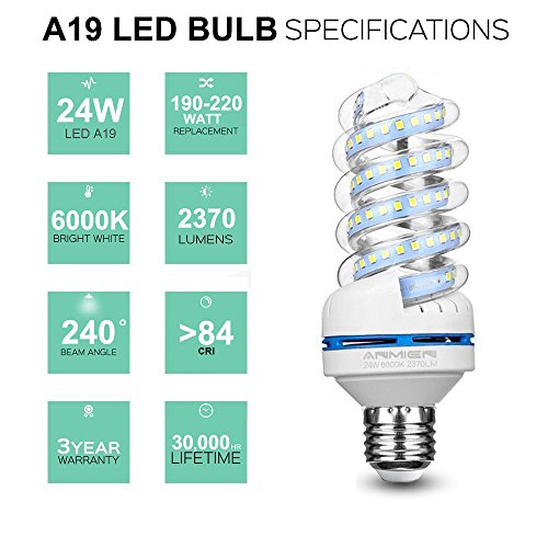 24 Watt Led Bulb,ANMIEN E27/E26 Lamp socket 6000K Daylight White LED Light Non-Dimmable 2370 Lumens 240° Omnidirectional LED Lamp 3 Pack