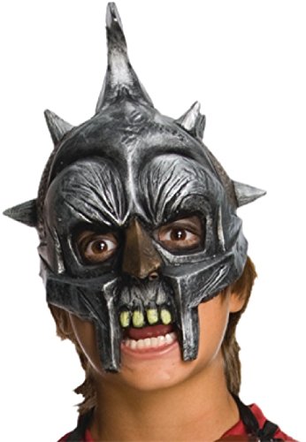 -. Feature : Vinyl 3/4 mask / Gladiator helmet with spikes; upper row of yellowed teeth / Chinless feature aids in comfort / Team up with other ghoulish monster masks from Rubie's for a group theme / Rubie's Costume Company has been bringing costumes and accessories to the world since 1950