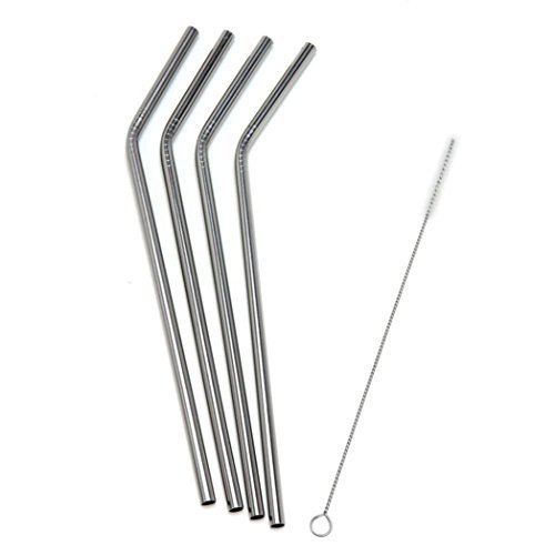 -. Title : A-store 4 Long Stainless Steel Drinking Straws+ Free Cleaning Brushed Included
