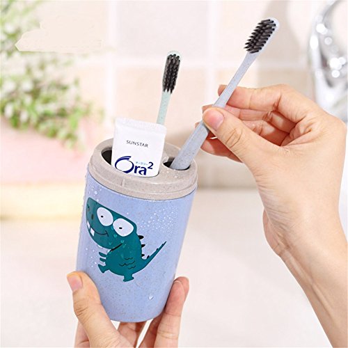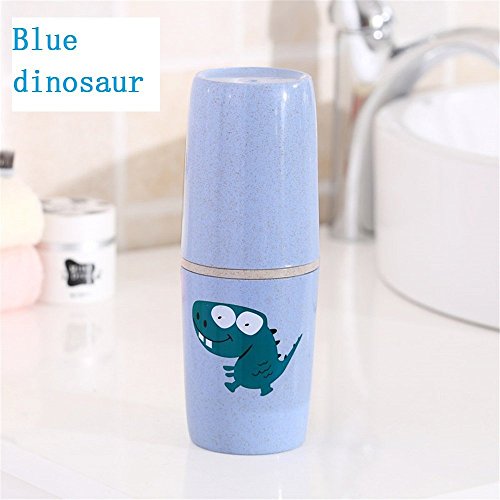 Cartoon Toothbrush and Toothpaste Holder for Kids With Cover,Plastic Toothpaste Holder Couple Bathroom Organizer Cover Protect Case Box Cup(Blue dinosaur)