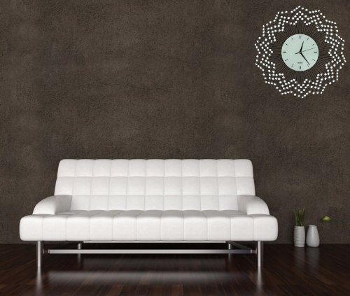 Celebrations Decorative Metal Wall clock with lots of beautiful crystal accents, this design inspired by fireworks. Wall clock frame made of metal and wall clock dial made of glass. Clock diameter 23" with dial size 8.50" for easy viewing and has quality quartz and battery operated movement.