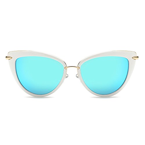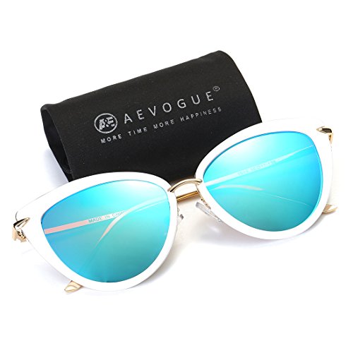 AEVOGUE Sunglasses For Women Cat Eye Frame Metal Temple Brand Designer AE0269 (Gold&Blue, 57)