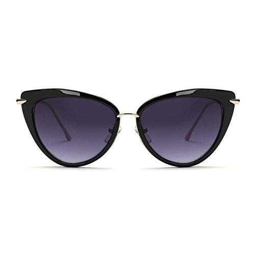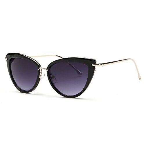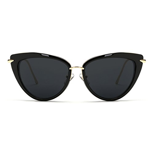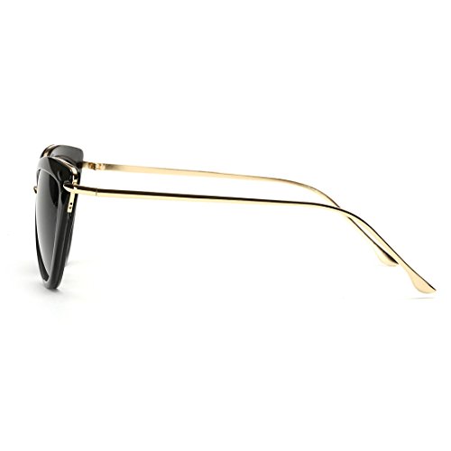AEVOGUE Sunglasses For Women Cat Eye Frame Metal Temple Brand Designer AE0269 (Gold&Black, 57)