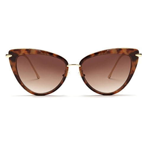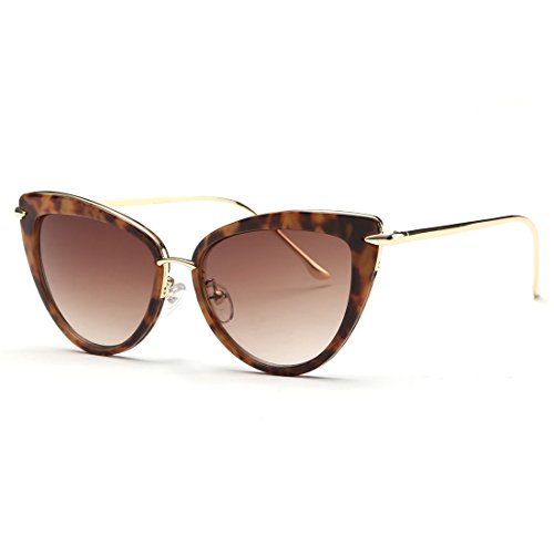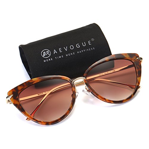 AEVOGUE Sunglasses For Women Cat Eye Frame Metal Temple Brand Designer AE0269 (Hawksbill&Brown, 57)