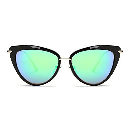 AEVOGUE Sunglasses For Women Cat Eye Frame Metal Temple Brand Designer AE0269 (Silver&Green, 57)