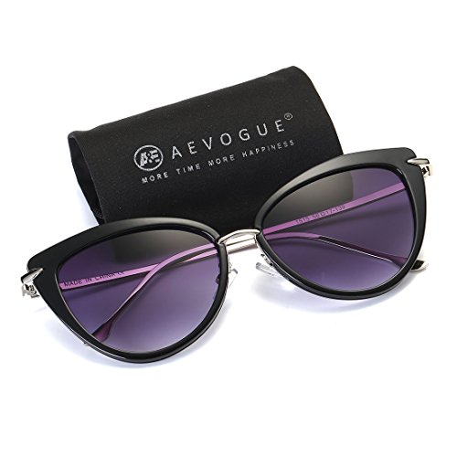 AEVOGUE Sunglasses For Women Cat Eye Frame Metal Temple Brand Designer AE0269 (Silver&Gray, 57)