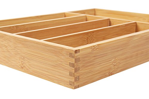 ORGANIC:The utensil tray frame and divers are made by Moso bamboo which is the most renewable source in the world and more Eco-friendly than a wood choice,no chemicals the bottom/base is made of MDF for longer use.