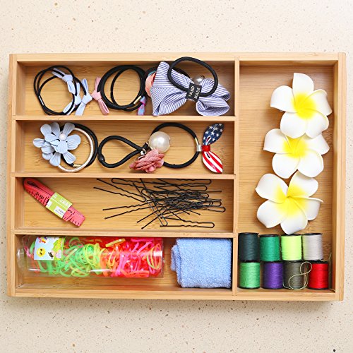 BEAUTIFUL DESIGNED:5 generous compartments,most use for a excellent drawer organizer,sturdy,durable and beautiful. We recommend measuring your drawer before you order!