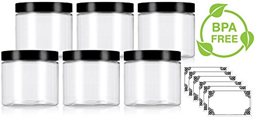 Clear 16 oz PET Plastic (BPA Free) Large Refillable Jar - (6 pack) + Labels