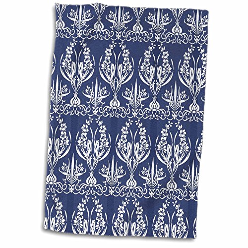 3D Rose French Country Style Floral Damask in Blue Hand Towel, 15" x 22"