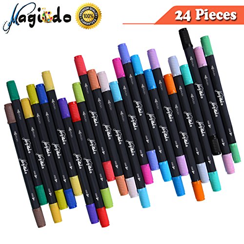 Magicdo 24 Cols Dual Tip Brush Pens Art Markers with Brush Tip and Fineliner Tip for Coloring Books Bullet Journal Note Taking