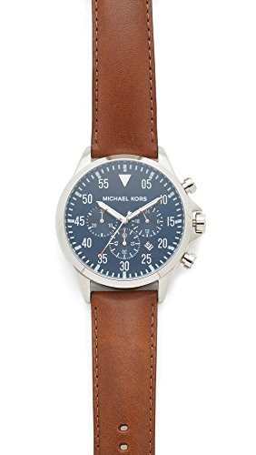 Brand, Seller, or Collection Name: Model number:MK8362 Part Number:MK8362 Model Year:2016 Item Shape:Round Dial window material type:Mineral Display Type:Analog Clasp:Buckle Case material:Stainless steel Case diameter:44 millimeters Case Thickness:12 millimeters Band Material:Leather-calfskin Band length:Men's Standard Band width:20 millimeters Band Color:Brown Dial color:Blue Bezel material:Stainless steel Bezel function:Unidirectional Calendar:Date display between 4 and 5 o'clock position Special features:Chronograph Item weight:5.28 Ounces Movement:Analog quartz Water resistant depth:330 Feet