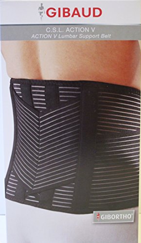 -. Binding : Health and Beauty -. Brand : GIBAUD -. Color : Black -. IsAdultProduct : 0 -. Label : GIBAUD -. LegalDisclaimer : If you have any doubts about how to apply or use this medical device, do not hesitate to consult your doctor and/or your fitter, pharmacist - orthotist - orthopedist. -. Manufacturer : GIBAUD -. ProductGroup : Health and Beauty -. ProductTypeName : HEALTH_PERSONAL_CARE -. Publisher : GIBAUD -. Studio : GIBAUD -. Title : GIBAUD ACTION V LUMBAR SUPPORT BELT