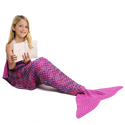 Feature : Amyhomie mermaid tail blanket is made of high quality knitting wool, it is pretty soft. Made by complicated processes with the colorful knitting wool, our mermaid blanket will absolutely catch your kids eyes. / Are you worried that your kid get cold when she lay on sofa to watch TVs or read books? Amyhomie kids mermaid tail blanket is here for you! It can keep your kid warm in 4 seasons. / Yes! Every girls must have a mermaid princess dream. With Amyhomie mermaid blanket, your girls dream will no longer just be a dream! / Stop thinking what's the best gift for your kids when Xmas or her birthday coming. Choose Amyhomie girls mermaid tail blanket --- higher quality, lower price and girl's favorite appearance. / Size: 150*70CM (59.06*27.56Inch)/ Half opening design at the back of our mermaid tail blanket, so you girl won't fell be tied when she wear it.