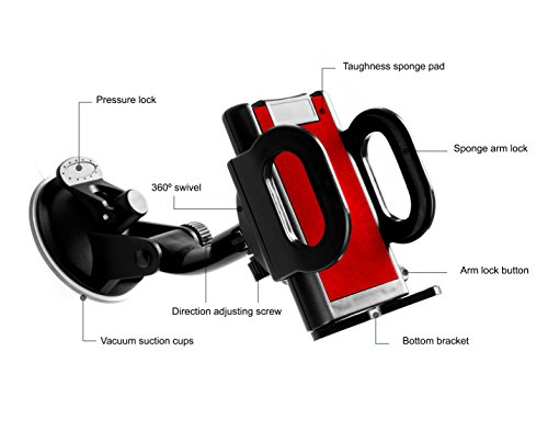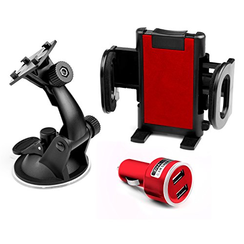 Car Mount Cell Phone Holder Universal for windshield Accessories Compatible to Samsung Galaxy S7 S6 S5, iPhone 6s 5s 5c and other mobile + Car charger, red.