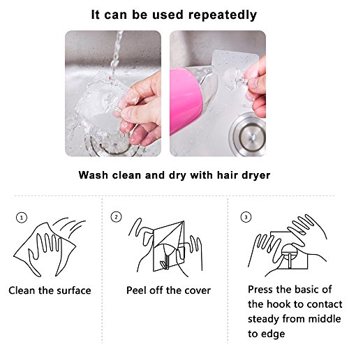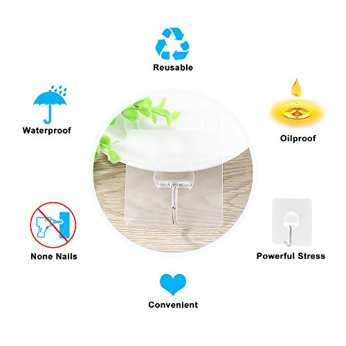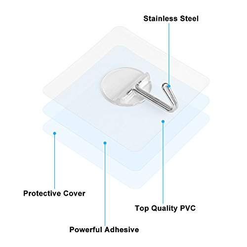 - MAX 20 lbs LOAD HEAVY DUTY HOOKS: Up to 20 lbs max load heavy duty hooks are made up of strong metal hook part and super sticky transparent clear plastic base, it works perfectly for hanging up items lighter than 20 lbs