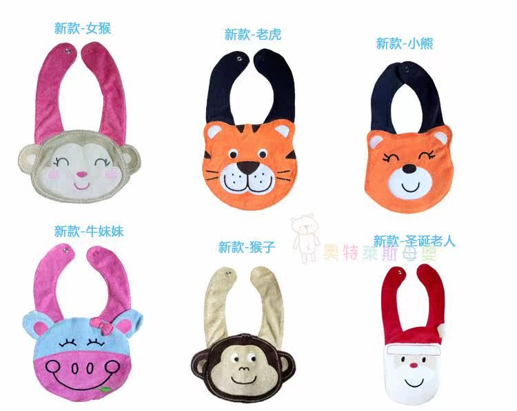【面料】:3层组成:第一层毛巾料,第二层夹丝吸水棉,第三层里层毛巾料,,防水效果很好。毛巾料非纯棉面料。颈部是按扣设计。