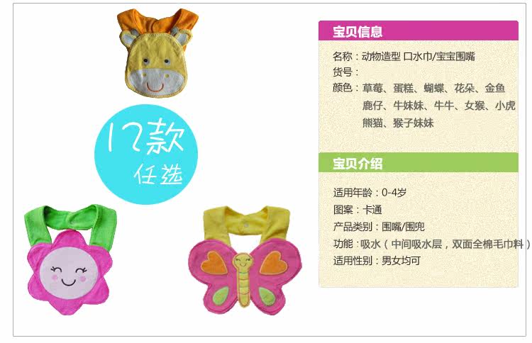 颈后搭扣设计,毛巾料很厚实,穿戴方便,又不会磨到宝宝脖子娇嫩的肌肤,而且围嘴本身的手感非常的好,很厚实柔软,宝宝带起来不仅实用性强,还非常的可爱抢眼。