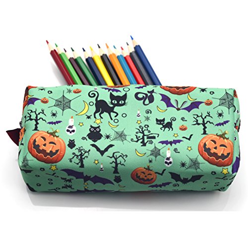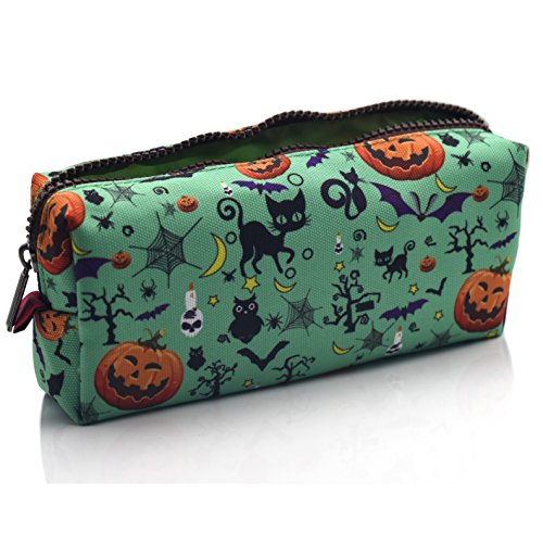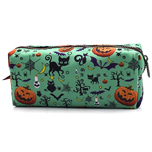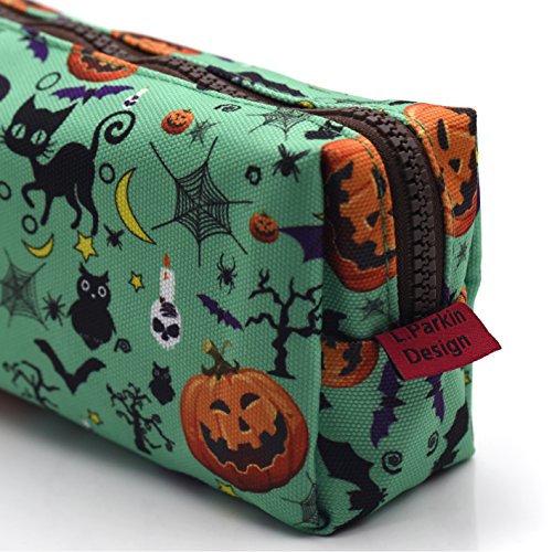 - This is a lovely Halloween print pencil case or mini makeup bag. Green coloured with Halloween prints. These are the perfect makeup storage solution and gift for any Halloween lover.