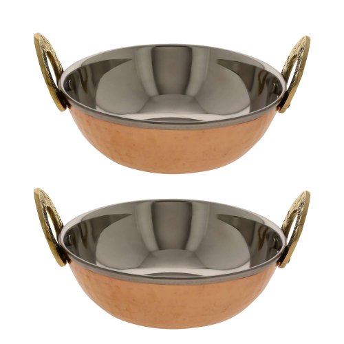 -. Binding : Kitchen -. Brand : ShalinIndia -. Color : Multicolor -. Feature : Set Of 12 TRADITIONAL KARAHI BOWLS Traditionally used to serve biryani, curry & daal / AUTHENTIC INDIAN SERVING DISHES Handcrafted by artisans of North India; Each Measure 5 Inches, height- 1.57 Inches; Hold 350mL, Weight-300 Gram / PREMIUM MATERIALS Copper bowl exterior lined with heavy-duty stainless steel on the interior / DOUBLES AS ATTRACTIVE KITCHEN DECOR Gorgeous hammered copper finish makes these bowls showpieces / UNIQUE COPPER ANNIVERSARY GIFTS Delight a couple or a special lady for her 5th wedding anniversary -. Label : ShalinCraft -. Manufacturer : ShalinCraft -. MPN : MPN-karahi_5inch_6 -. PackageQuantity : 6 -. PartNumber : MPN-karahi_5inch_6 -. ProductGroup : Home -. ProductTypeName : HOME -. Publisher : ShalinCraft -. Studio : ShalinCraft -. Title : Serving Bowl Karahi Indian Food Serveware- 6 sets of 2 karahis (Total 12 Pieces)- Diameter 5 Inch -. Warranty : Do not put copper utensils in dishwashers as acids contained in the soap may tarnish the copper ware permanently. Clean it either with lemon juice or mix a bit of flour, salt and vinegar to bring back the colour and remove any oxidisation from the water you are purifying.