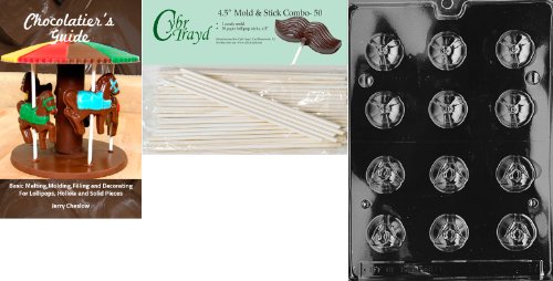 Cybrtrayd 45St50Bk-F047 'Tulip Lolly' Fruits and Vegetables Chocolate Candy Mold with 50 4.5-Inch Lollipop Sticks and Chocolatier's Guide
