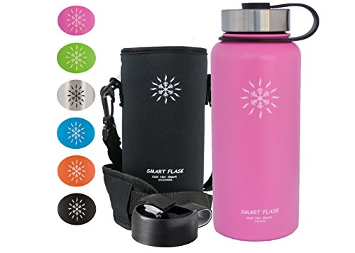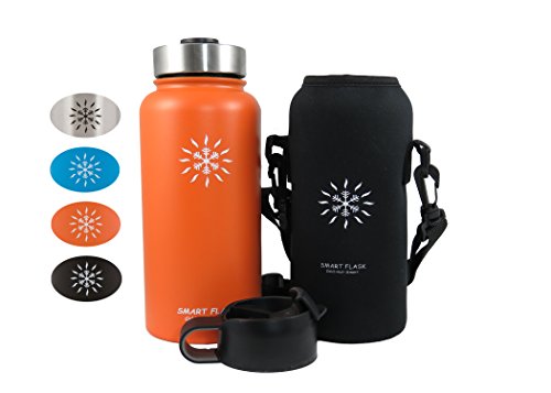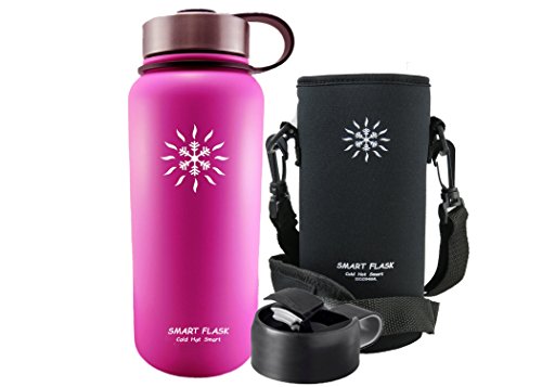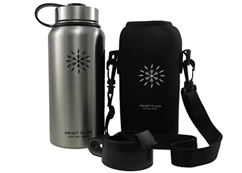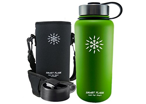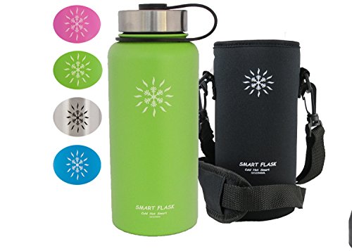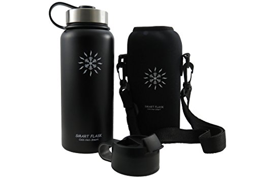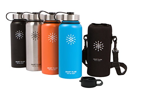 At last, a vacuum insulated stainless steel water bottle that's easy to carry and keeps drinks warm or cold for up to 24 hours. Even better, the flip top lid allows one-hand access. Heading to the office for an early morning? Hitting the gym for an afternoon workout? No matter what's going on in your life, your new stainless steel Smart Flask is the perfect companion. The double-wall, vacuum-insulated design not only keeps your water, iced tea, or lemonade cool and refreshing all day long, but it also keeps coffee and tea hot for up to 6 hours. No more keeping track of - and cleaning - multiple bottles for different drinks. All Smart Flask bottles are made with top-quality, food-grade, 18/8 stainless steel. Natural antibacterial properties and BPA-free materials make it safer than plastic bottles, plus, it's better for the environment, too. It's perfect for hiking, running, and cycling, and it won't sweat, even on the hottest day. The metal cap won't crack or warp, so there's never a worry about leaks, while the flip top lid offers easy one-handed accessibility. Plus, the wide opening comfortably accommodates ice cubes and even fruit, and makes for fast and easy cleaning, too. ? 32-ounce ? Stainless steel, double-wall construction ? Neoprene holder with strap ? Vacuum insulated ? Steel flip-top cap ? Eco friendly ? BPA Free ? No sweat The genesis for the Smart Flask was in the desert outside Phoenix Arizona. It's here that we discovered the advantages of vacuum insulation and it is here in the blistering heat that we test, use and develop the Smart Flask and the products that are to follow. Care Tip Hand wash your Smart Flask. The dishwasher is not good for stainless steel, your durable powder coat or the vacuum insulation. Click "Add to Cart" to order your Smart Flask today, and pick one up for a friend, too. They make a great gift! 0 |