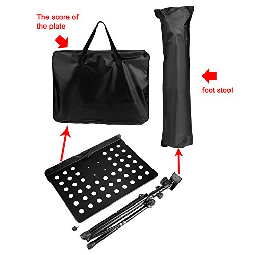 -. Feature : The bookplate of the music stand measures 49 x 33.5 cm/ 19.1 x 13.1 inch (L x W), enough space for hold the music sheets. / The tilting bookplate can be freely adjusted to a certain angle depending on the height and direction you sit. / SUPER LIGHT & PORTABLE:this sheet stand holder belongs to ultra-lightweight style, / Comes with black carrying bag, easy to carry and storage / Suit for school, orchestras, choirs, church bands, classrooms. Package content: 1 x Music Conductor Stand + 1 x Black Carrying Bag