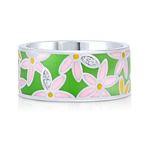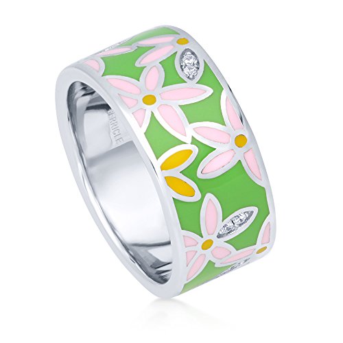 -. Title : BERRICLE Sterling Silver Cubic Zirconia CZ Enamel Flower Fashion Right Hand Cocktail Statement Ring