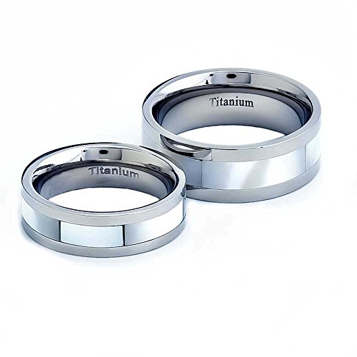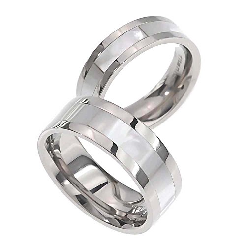 -. Title : His And Hers Wedding Ring Sets 6/8mm Titanium Band Mother Of Pearl Inlay Round Edge Wedding Band Sets