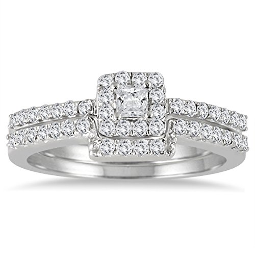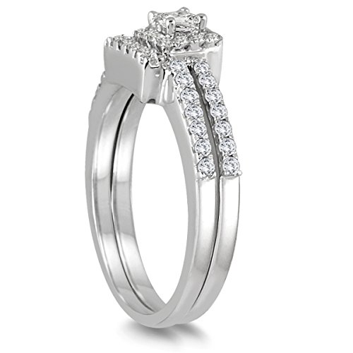 -. Title : 1/2 Carat Halo P.R.Incess Cut Diamond Bridal Set in 10K White Gold